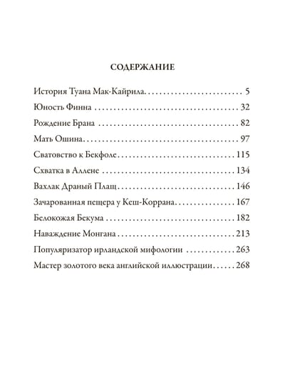 This edition includes ten Irish myths, revised and recorded by the original Irish writer James Stevens. In his talented presentation, these ancient legends acquired an original style and became rich in vivid metaphors. It is still interesting to get acquainted with the folklore of Ireland through these texts by Stevens. They are translated from English by S. Y. Afonkin. At the end of the book there is a biography of Stevens and a short essay on the work of the famous British artist Arthur Rackham, whose drawings adorn this edition.