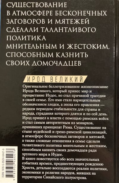 The author offers an original version of the life of Herod the Great, debunks the myth of the massacre of the innocents, using the testimony of great ancient historians, and recreates in detail the realities of politics, economics, and the subtleties of the beliefs of the peoples who lived on the territory of the Sinai Peninsula.
