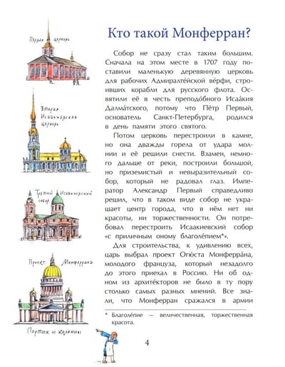 The construction of St. Isaac's Cathedral, one of the main attractions of St. Petersburg, appears to readers as a fascinating story. How was it possible to build the foundation of the temple on marshy soil? How were the huge columns erected? Why are there clay pots in the dome of the cathedral? What sculptures adorn the walls and where is the architect himself depicted? All the answers are on the pages of this book.