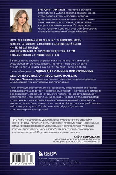 Reconstructing the circumstances of the disappearance, deciphering elements of the case, amusing details and her own theories - in this book, Victoria Charlton tells stories that will make readers' hearts swoon, make them dizzy and evoke strong emotions. But it's not just about feelings and sensations - she hopes to bring these real-life stories back into the spotlight. Who knows, maybe you are the right witness to help find a way out of the impasse. Whatever the case may be, stay alert.