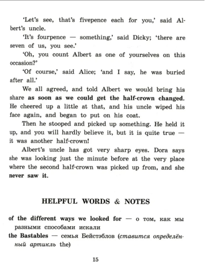 The text has been adapted for educational purposes up to the Elementary level. Each chapter is accompanied by commentary, translations of difficult words and expressions, and tasks tailored to the requirements of the OGE. These tasks are aimed not only at testing comprehension of the text but also at practicing vocabulary and grammar, as well as developing reading, speaking, and writing skills. The exercises help develop and enhance the communicative skills essential for successfully passing the 9th-grade final exam.