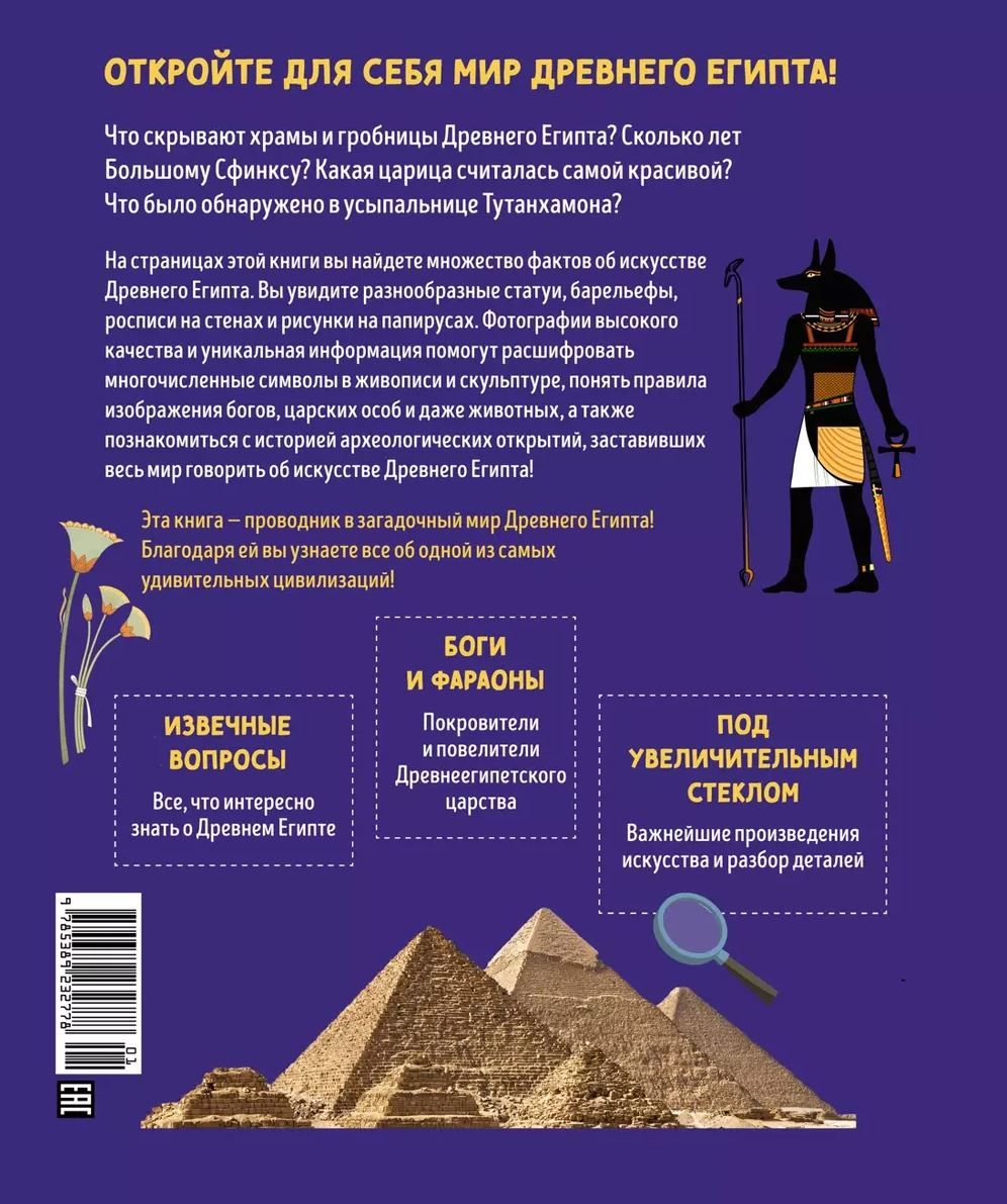 What do the temples and tombs of ancient Egypt hide? How old is the Great Sphinx? Which queen was considered the most beautiful? What was discovered in the tomb of Tutankhamun? In the pages of this book you will find many facts about the art of Ancient Egypt. You will see a variety of statues, bas-reliefs, wall paintings and papyrus drawings. High-quality photographs and unique information will help you decipher the numerous symbols in painting and sculpture, understand the rules of depicting gods, royalty and even animals, as well as get acquainted with the history of archaeological discoveries that made the whole world talk about the art of Ancient Egypt.