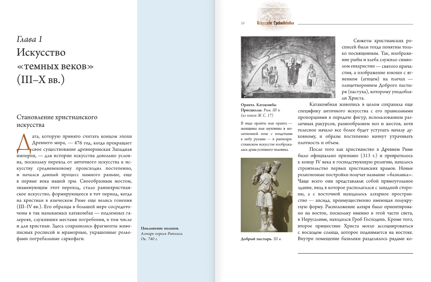 The Middle Ages is a significant period in world history, lasting about a thousand years. The term "Middle Ages" first appeared in the 15th century, in the texts of Italian humanists, who used this concept to describe the period from the fall of the Roman Empire to the beginning of the era in which they themselves lived. But a century earlier, the famous poet Francesco Petrarch gave this period a different definition - "the Dark Ages". The biographer of the great masters of the Renaissance, Giorgio Vasari, called it "ugly and wild", and the Enlightenment thinker Voltaire believed that the history of the Middle Ages "is worth knowing only in order to despise it". In our time, the Middle Ages have long been treated so harshly and categorically, and the artistic heritage of this era has deservedly been given a worthy place in the history of European art. This book will give you the opportunity not only to get to know the amazing heritage of the Middle Ages better, but also to clarify some questions for yourself: