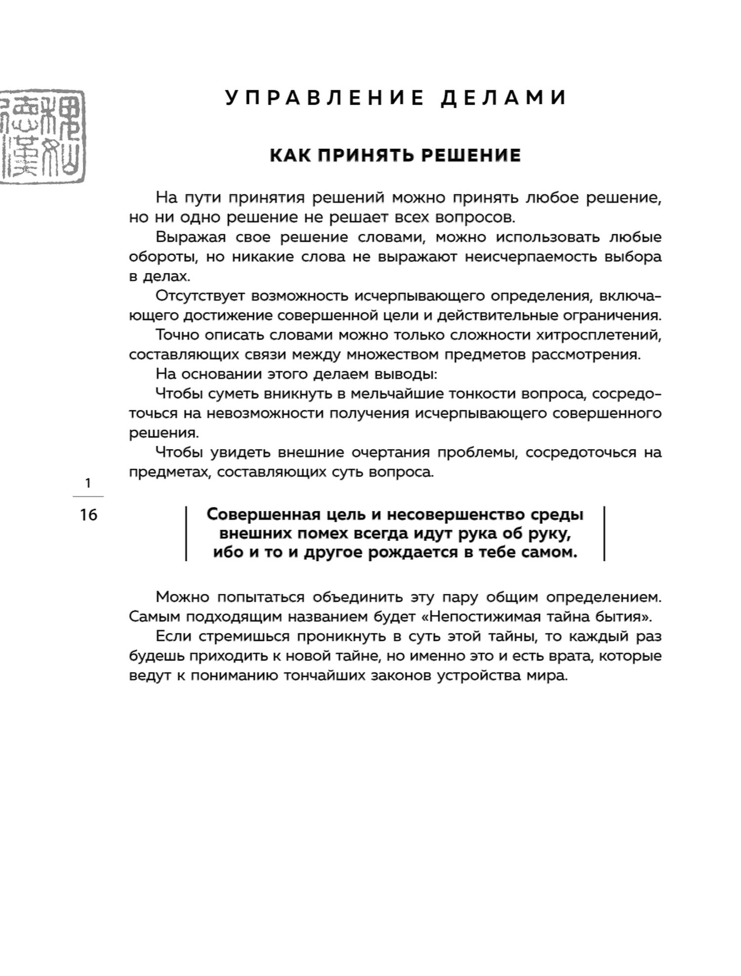 The new edition of the book by the famous China expert, writer, artist and translator Bronislav Vinogrodsky is dedicated to the structure of management, namely, obtaining predictable results from influencing three aspects of reality: deeds, circumstances and states. Paradoxes here coexist with clear instructions, and deep wisdom with poetic images.