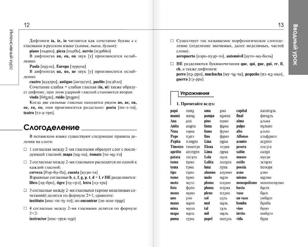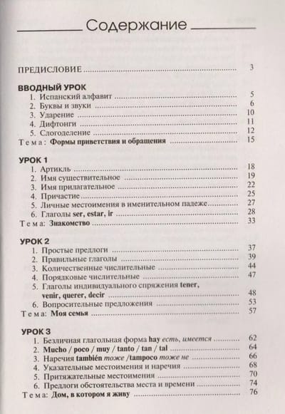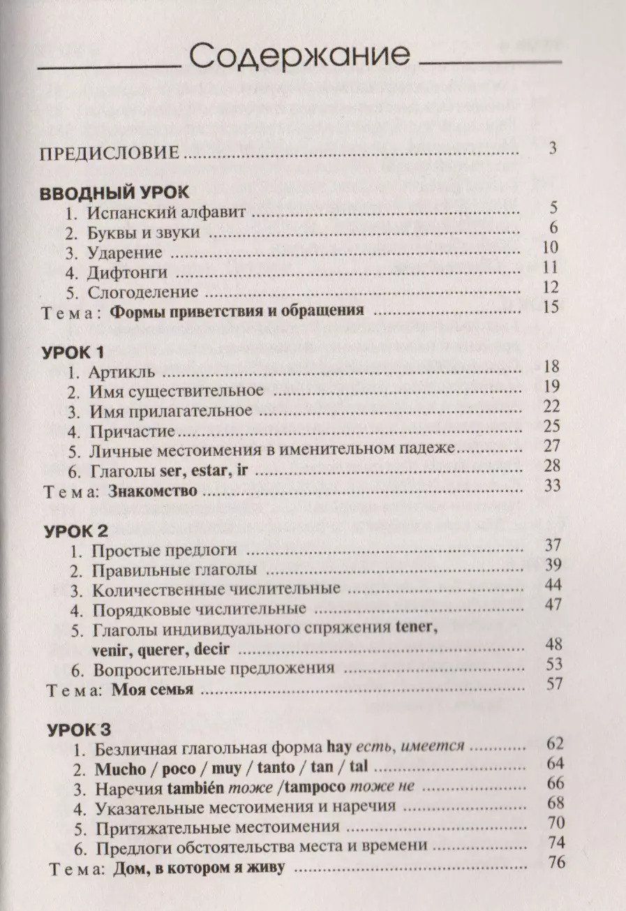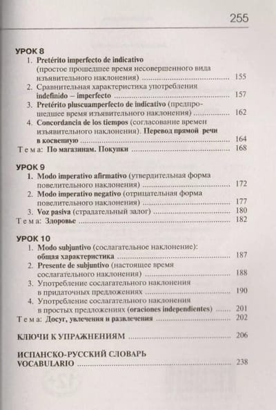 This self-study guide will help you to master the vocabulary and grammar minimum of the elementary level and simple forms of conversational speech in a short period of time. The course material is divided into 10 lessons, which present basic grammar topics and useful vocabulary necessary for everyday communication. A large number of exercises are offered for practicing practical skills. In case of difficulty you will be able to check yourself using the keys. All texts and dialogs are given with a parallel translation into Russian, at the end of the book there is also a Spanish-Russian dictionary. The book is addressed to everyone who wants to master the basics of Spanish in a short time.