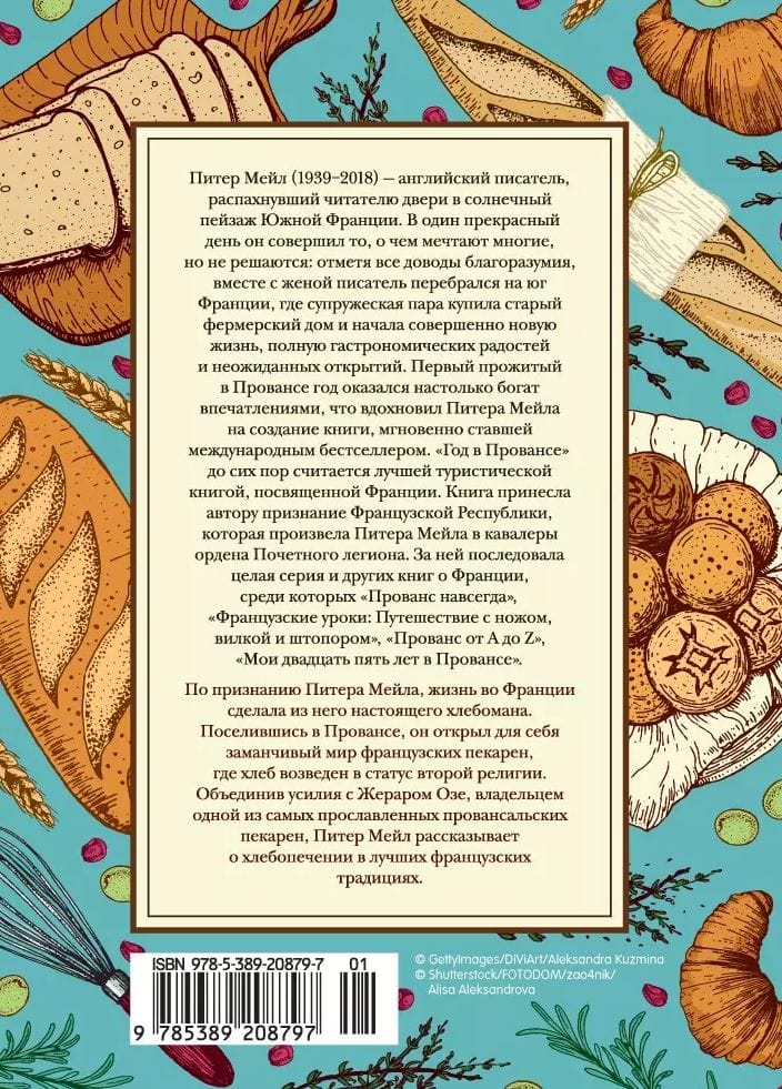 According to Peter Mayle, living in France has made him a real bread lover. After settling in Provence, he soon forgot about standard supermarket baked goods and discovered the enticing world of French bakeries, where bread is elevated to the status of a second religion. Joining forces with Gerard Ozet, owner of one of Provençal's most celebrated bakeries, Peter Mayle tells us about baking in the best French tradition. Together with the author, we will go inside the bakery to learn how a loaf is born. We will see the master who kneads, rolls, squeezes and twists the dough into appetizing products. Plus, get precise, beautifully illustrated instructions for creating sixteen types of bread, from the classic baguette to loaves made with ingredients such as bacon, cheese, apricots, nuts, garlic, and olives. Bread is one of the oldest sources of joy in the world, and now, by carefully following Gerard Ozé's advice, we can easily bring that joy to ourselves, our family and friends. Read, bake and enjoy.