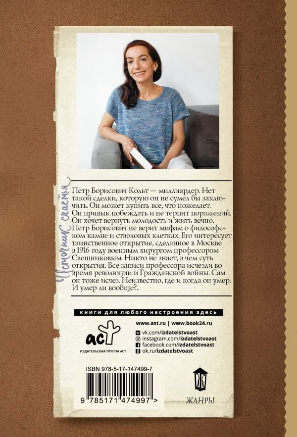 Peter Borisovich Colt is a billionaire. There's no deal he can't make. He can buy anything he wants. He is used to winning and does not tolerate defeat. He wants to regain his youth and live forever. Peter Borisovich does not believe myths about the philosopher's stone and stem cells. He is interested in the mysterious discovery made in Moscow in 1916 by the military surgeon Professor Sveshnikov. No one knows what the essence of the discovery is. All the professor's notes disappeared during the revolution and civil war. He himself also disappeared. It's not known where and when he died. And whether he died at all...?