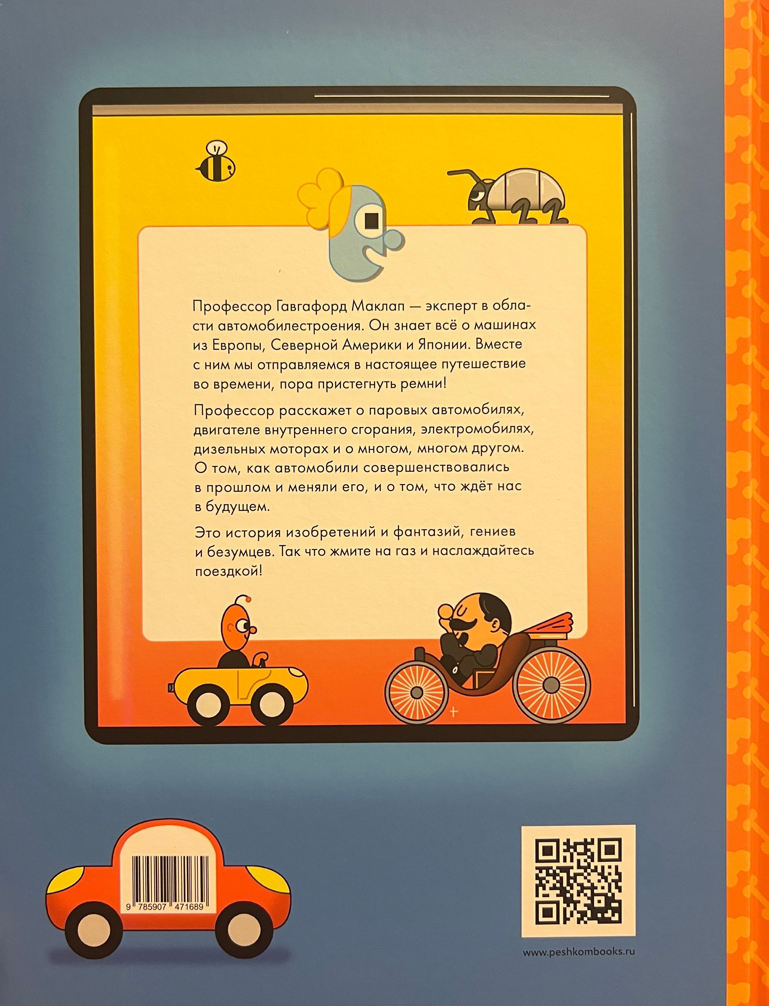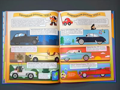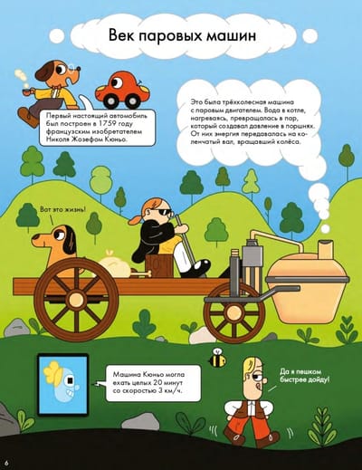 Since ancient times, people wanted to create a self-propelled vehicle. First on springs, then on wind and sails, and finally on steam, electric traction and gasoline. Together with Professor Gawgaford Maclap and his friends, the Machine and the Button, we will study the "History of the Car in Comics", learn about famous cars, the structure of the engine, types of cars, who and why invented car racing, and also see if it is possible to create a car that is harmless to the world around us. For example, did you know that the assembly of the first mass-produced car - the famous "Ford" Model T took only 1.5 hours and cost $ 260, which was affordable even for the poor? And have you ever seen three-wheeled cars and those that can both drive on land and float on water? The book contains not only interesting facts, but also a couple of secret tasks that only an attentive reader can complete. This comic was created and drawn by Eliot Krasinski, an illustrator living in London. He works not only with books, but also with art objects and large murals. He collaborates with The New York Times and The Telegraph. As Eliot himself says, with the help of his black cat Pablo, he draws day and night to bring more happiness to this world.