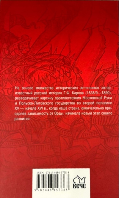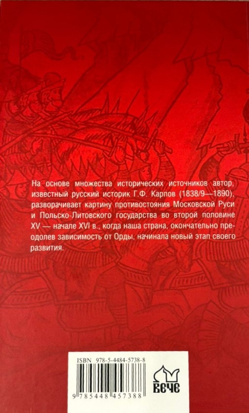 Based on numerous historical sources, the author, the renowned Russian historian G.F. Karpov (1838/9–1890), develops a picture of the confrontation between Muscovite Rus' and the Polish-Lithuanian Commonwealth in the second half of the 15th and early 16th centuries, when Russia, having finally overcome its dependence on the Horde, began a new stage of its development.