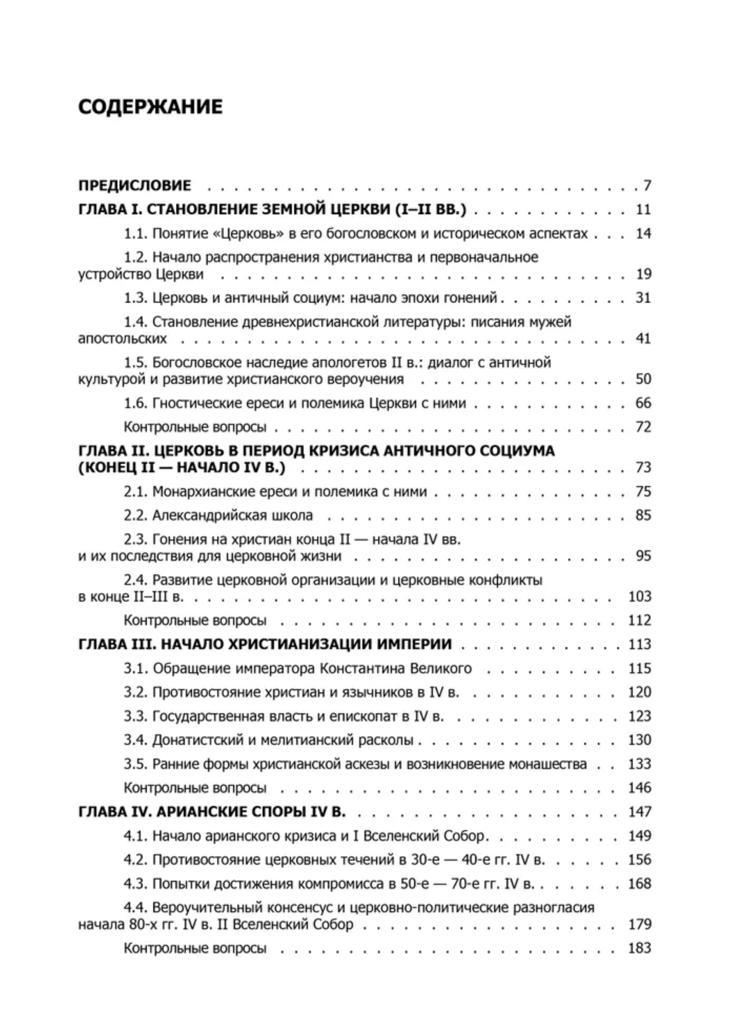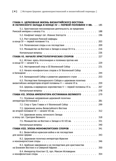 The textbook covers the first 15 centuries of church history — from the apostolic era to the fall of the Byzantine Empire. The ancient Christian and Byzantine heritage is of fundamental importance for the Orthodox Church, since it was during these periods that the dogmatic teaching, the body of church canons, and the most important church institutions were formed. At the same time, for an adequate understanding of the monuments of church Tradition, it is necessary to take into account the historical context of their origin, namely, the conditions of the existence of the Church within the Roman and then Byzantine Empire, as well as in the kingdoms of the Latin West. The manual pays special attention to the history of church organization, the relationship between church and state authorities, the development of theological thought, church conflicts, Christian missionary activity, the history of the emergence and development of monasticism.