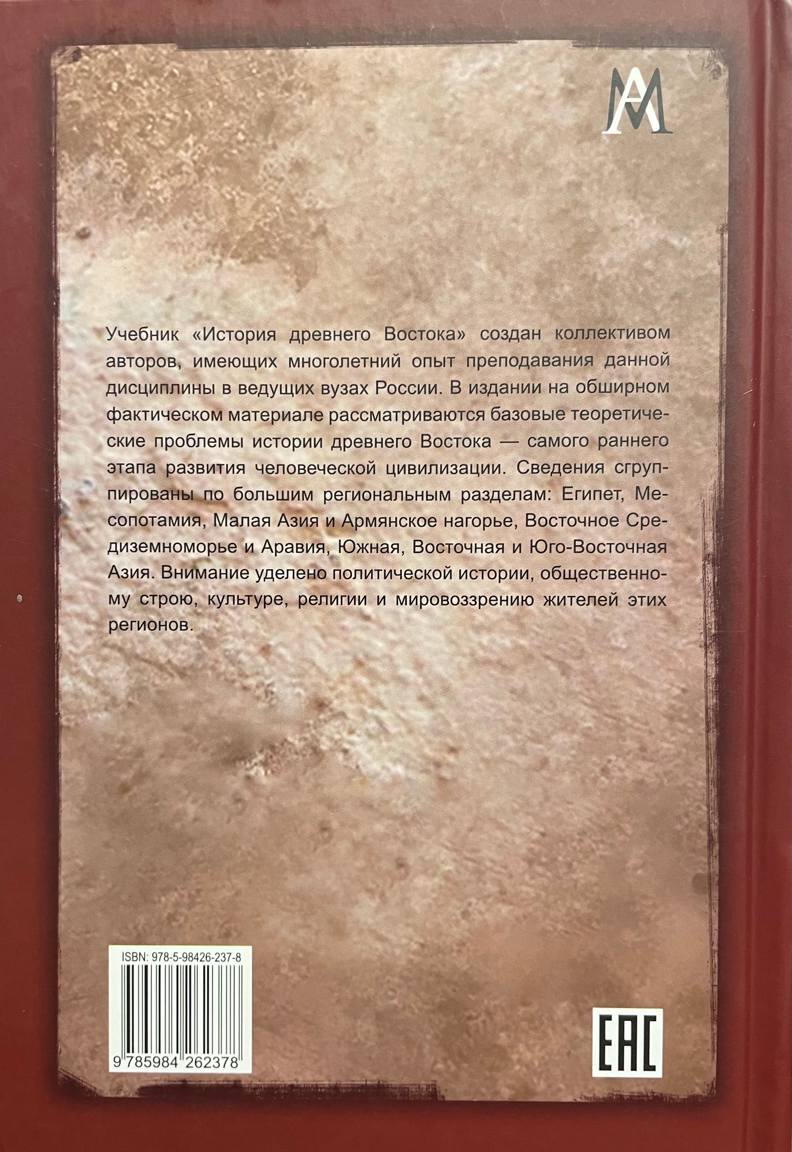 The textbook "History of the Ancient East" was created by a team of authors with extensive experience teaching this subject at leading Russian universities. Using extensive factual material, this publication examines the fundamental theoretical issues of the history of the ancient East—the earliest stage in the development of human civilization. The information is grouped into broad regional sections: Egypt, Mesopotamia, Asia Minor and the Armenian Highlands, the Eastern Mediterranean and Arabia, South, East, and Southeast Asia. Attention is paid to the political history, social structure, culture, religion, and worldview of the inhabitants of these regions.