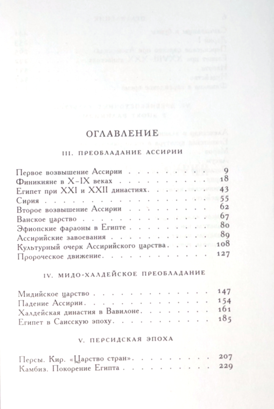 The first part of the work is devoted to the region as a whole, its geography and ethnography, as well as the most ancient civilizations: Sumerian, Babylonian, and Hittite. The history of Egypt from the Archaic period to the 20th Dynasty is also examined.