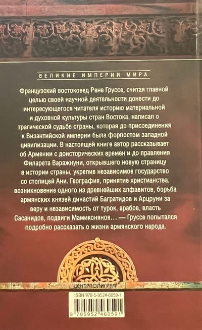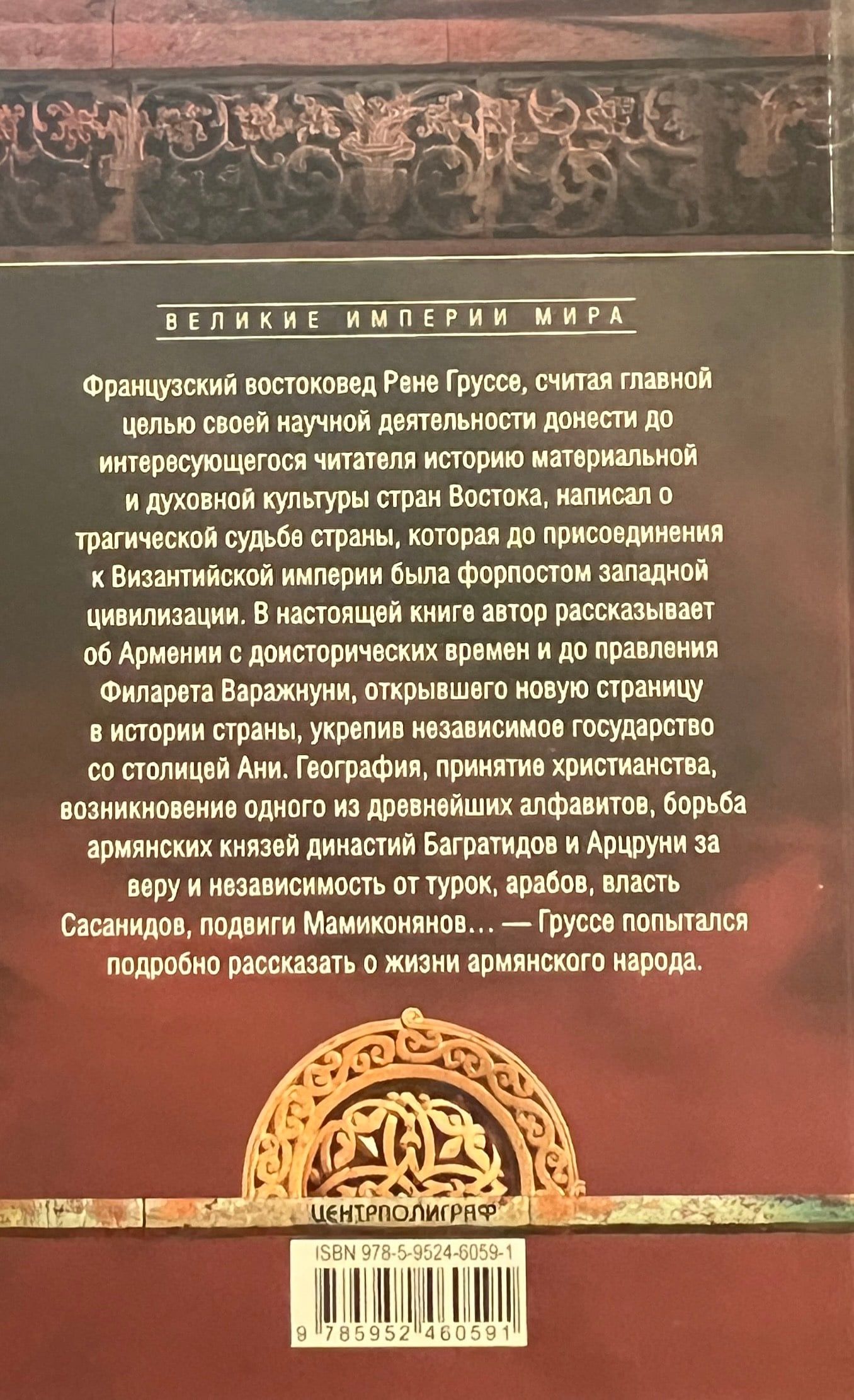 French orientalist Rene Grusse, considering the main goal of his scientific activity to convey to the interested reader the history of material and spiritual culture of Eastern countries, wrote about the tragic fate of the country, which before joining the Byzantine Empire was an outpost of Western civilization. In this book the author tells about Armenia from prehistoric times to the reign of Philaret Varažnuni, who opened a new page in the history of the country by establishing an independent state with Ani as its capital. Geography, the adoption of Christianity, the emergence of one of the oldest alphabets, the struggle of the Armenian princes of the Bagratid and Artsruni dynasties for faith and independence from the Turks, Arabs, the power of the Sassanids, the exploits of the Mamikonians... - Grusse tried to tell in detail about the life of the Armenian people.