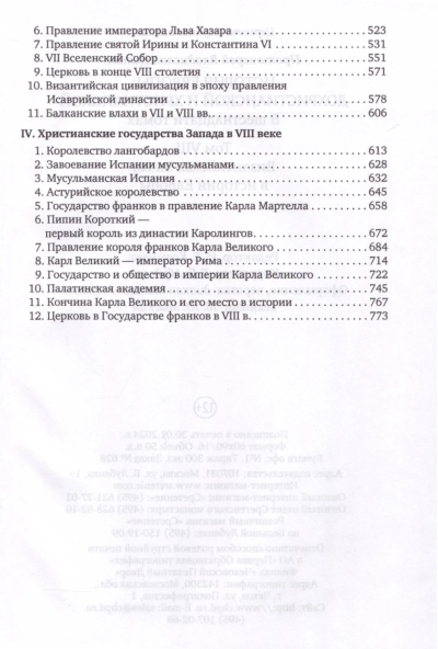 The book by Archpriest Vladislav Tsypin "The Byzantine Era in the History of Europe: VII-VIII Centuries" continues the author's series "History of Europe: Pre-Christian and Christian". It covers the end of the early Byzantine period (the reign of the Heraclides dynasty) and the beginning of the middle Byzantine period. This is the era of the weakening importance of cities and the prevalence of agrarian relations, the era of the return of the empire to the status of a stronghold of Orthodoxy after the "purifying" VI Ecumenical Council; the VIII century is the time of the emergence of the iconoclastic heresy and the victorious restoration of the veneration of icons by the holy queen Irene, the time of the appearance of such great ascetics and teachers of the Church as the Venerable John Climacus, Maximus the Confessor and John of Damascus.