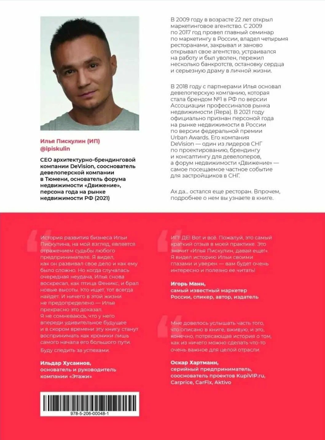 In 2009, at the age of 22, Ilya Piskulin opened his own marketing agency. From 2009 to 2017, he held the leading marketing seminar in Russia, owned four restaurants, closed and reopened his agency, got and was fired from jobs, survived several bankruptcies, a cardiac arrest, and serious personal drama.