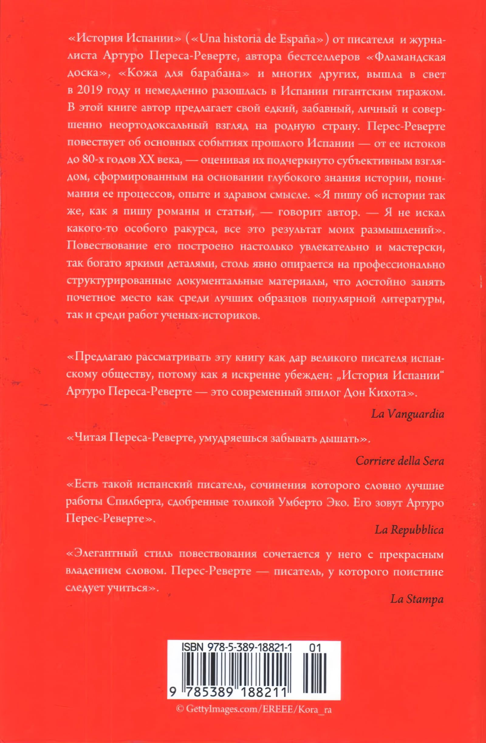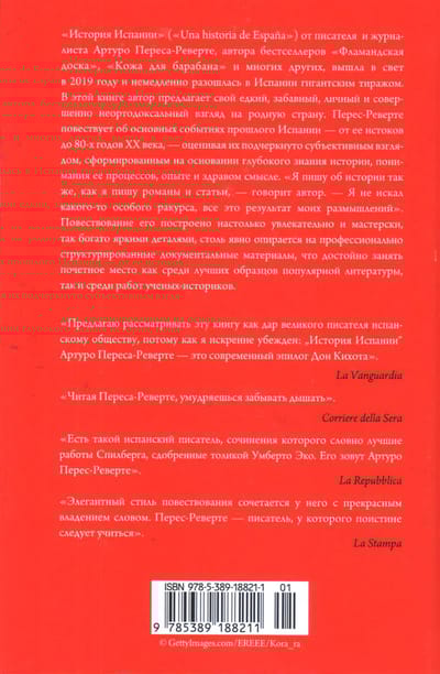 "The History of Spain" ("Una historia de Espana") from writer and journalist Arturo Pérez-Reverte, author of the bestsellers "The Flemish Board", "Skin for Drum" and many others, was published in 2019 and immediately sold out in Spain with a gigantic circulation. In this book, the author offers his caustic, funny, personal and completely unorthodox view of his native country. Perez-Reverte narrates the main events of Spain's past - from its origins to the 80s of the XX century - assessing them with an emphasized subjective view, formed on the basis of a deep knowledge of history, understanding of its processes, experience and common sense. "I write about history the same way I write novels and articles," says the author. - 'I have not sought any particular angle; it is all the result of my reflections'. His narrative is constructed so engagingly and masterfully, so rich in vivid details, so clearly based on professionally structured documentary materials, that it deserves to take an honorable place among the best examples of popular literature, as well as among the works of academic historians.