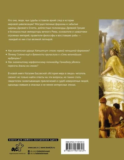 Who are they, those people whose destinies left a bright trace in the history of world civilization? Powerful pharaohs and forgotten queens of Ancient Egypt, valiant commanders of Ancient Greece and ruthless emperors of eternal Rome, founders and invaders of huge empires, rulers-philosophers and rebellious slaves - each of them became a great legend. How did the Egyptian queen Hatshepsut become the first female pharaoh? Why was Solon ranked among the "Seven Greatest Sages" in ancient times? How did the famous Carthaginian commander Hannibal managed to cross the Alps on elephants? In Natalia Basovskaya's new book "History of the World in Faces" the reader can not only find answers to these questions, but also witness the exciting adventures and the fates of incredible people who once lived in dangerous and no less interesting eras.