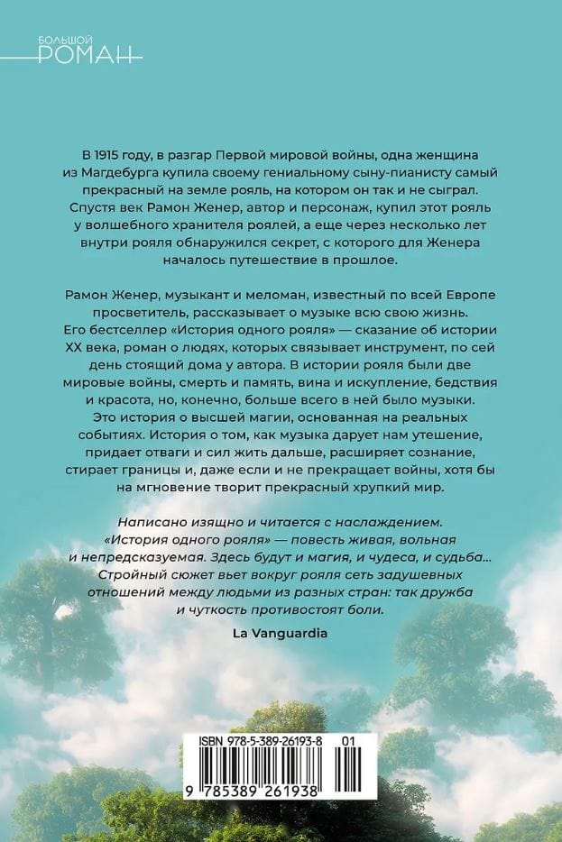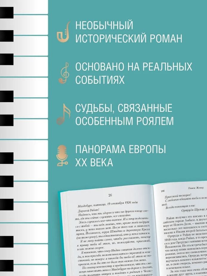 Ramon Gener, a musician and music lover, a lecturer, educator, radio and television presenter known throughout Europe, has been talking about music all his life. “The Story of a Piano” is his first novel, which instantly became a bestseller, is translated into a dozen languages and has already earned the author the Ramon Llull Prize, the most prestigious Catalan literary award. “The Story of a Piano” is a tale of the history of the 20th century, a novel about people who are connected by an instrument that still stands in the author’s home. “Where reality did not reach, it was necessary to fill the gaps with fiction,” explains Genère, “but this fiction is also based on reality.” The history of the piano included two world wars, death and memory, guilt and redemption, disasters and beauty, but, of course, most of all, it was music. It is a story about the highest magic, based on true events. A story about how music gives us consolation, gives us courage and strength to live on, expands consciousness, erases borders and, even if it does not stop wars, at least for a moment creates a beautiful fragile peace.