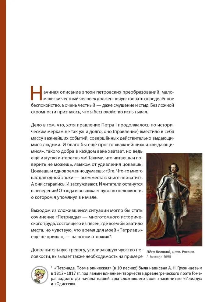 Conceived as an imitation of the “Satyricon”, “History of Russia, retold for children and adults” also consistently and in a parody manner describes the events that took place in the country, since the appearance of mammoths and the first people here, but, unlike the famous book of satyricons, is designed primarily for the young reader. The author’s submission of material and anti-serious style of narration do not make the book less informative and interesting.