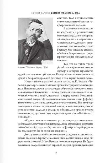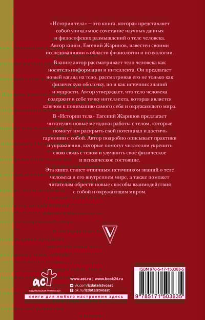 "History of the Body" is a book that is a unique combination of scientific data and philosophical reflections on the human body. The author of the book, Evgeny Zharinov, is known for his research in the field of physiology and psychology. In the book, the author considers the human body as a carrier of information and intelligence. He offers a new view of the body, considering it not only as a physical shell, but also as a source of knowledge and wisdom. The author argues that the human body contains a point of intelligence, which is the key to understanding oneself and the surrounding world.