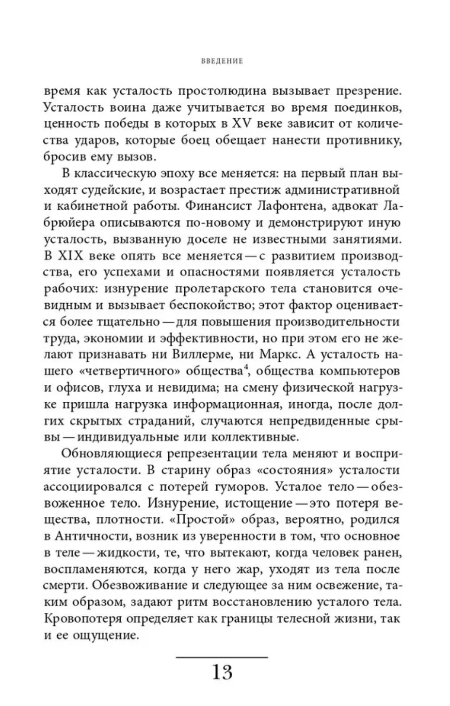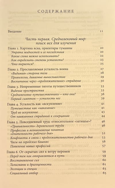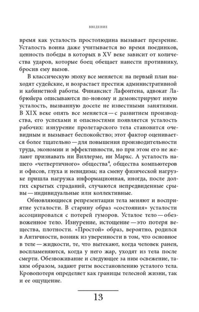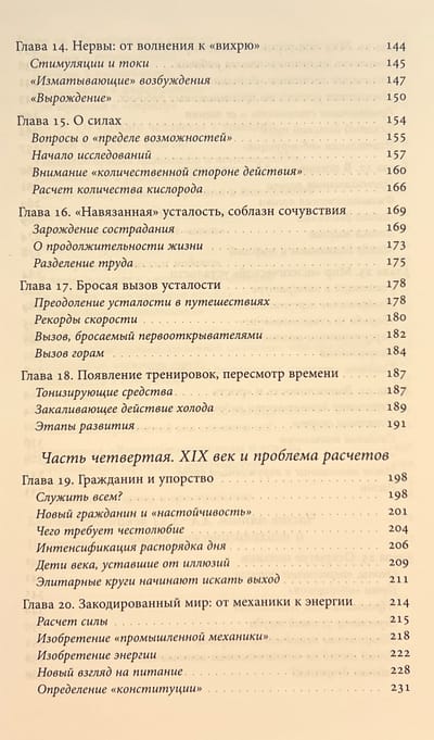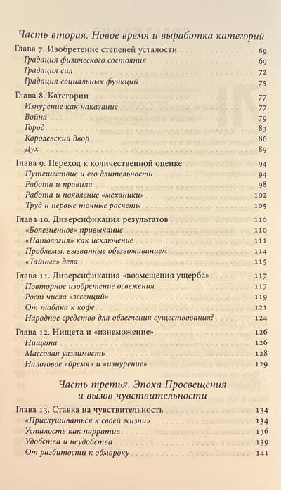 The author turns to the history of the body and medical practices, to the history of labor, war, sports and intimacy. The pious exhaustion of medieval pilgrims, the fatigue of knights after tournaments, the burnout of modern office workers, the exhaustion of doctors in COVID hospitals... This book is a tour of all types and historical stages of fatigue.