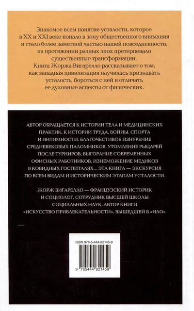 The familiar concept of fatigue, which in the 20th and 21st centuries came into the public eye and became a more noticeable part of our everyday life, has undergone significant transformations throughout different eras. Georges Vigarello's book tells how Western civilization learned to recognize fatigue, fight it and distinguish its spiritual aspects from physical ones.
