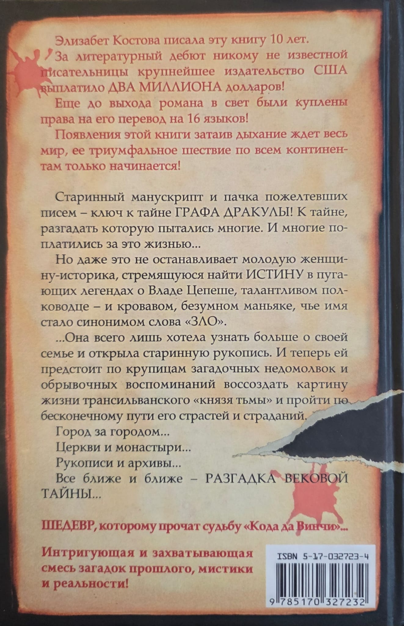 An ancient manuscript and a stack of yellowed letters are the key to the mystery of Count Dracula! A mystery that many have tried to unravel. And many have paid for it with their lives... But even this does not stop a young female historian who strives to find the truth in the frightening legends of Vlad the Impaler, a talented military leader - and a bloody, insane maniac whose name has become synonymous with the word "Evil". ... She just wanted to learn more about her family and opened an ancient manuscript. And now she has to recreate the life of the Transylvanian "prince of darkness" bit by bit, from mysterious omissions and fragmentary memories, and follow the endless path of his passions and suffering. City after city... Churches and monasteries... Manuscripts and archives... Getting closer and closer - the solution to the age-old mystery...