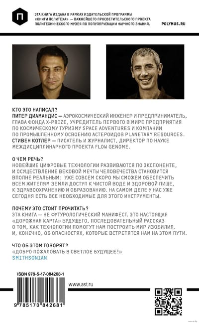 The latest digital technologies are developing exponentially, and the realization of the age-old dream of mankind is becoming a reality: the authors of this book, renowned entrepreneur and innovator Peter Diamandis and writer Steven Kotler, believe that very soon we will be able to provide everyone on Earth with access to clean water and healthy food, health care and education. In fact, we already have all the tools we need to do so today.
