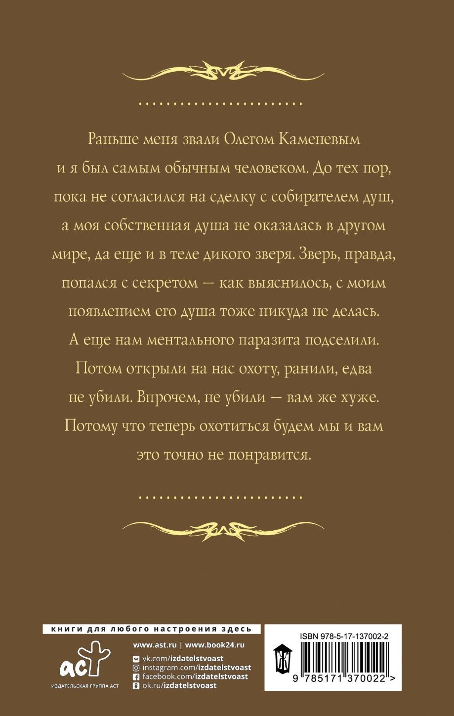 My name used to be Oleg Kamenev and I was a very ordinary person. Until I agreed to a deal with a soul collector, and my own soul ended up in another world, and in the body of a wild beast. The beast, however, had a secret - as it turned out, with my appearance, its soul did not go anywhere either. And they also planted a mental parasite in us. Then they started hunting us, wounded us, almost killed us. However, they didn't kill us - it's worse for you. Because now we will be hunting and you definitely won't like it.