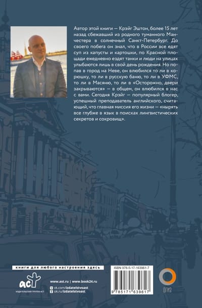 The author of this book is Craig Ashton, who more than 15 years ago escaped from his native foggy Manchester to sunny St. Petersburg. Before his escape, he knew that in Russia everyone eats cabbage and potato soup, tanks drive through Red Square every day, and people on the streets smile only on their birthday. But once in the city on the Neva River, he fell in love with koryushka, or Russian baths, or the FMS, or Masyanya, or "Beware, the doors are closing" - in general, he fell in love with you and me. Today Craig is a popular blogger, a successful English teacher, and believes that the main mission of his life is to "dive deeper and deeper into language in search of linguistic secrets and treasures".