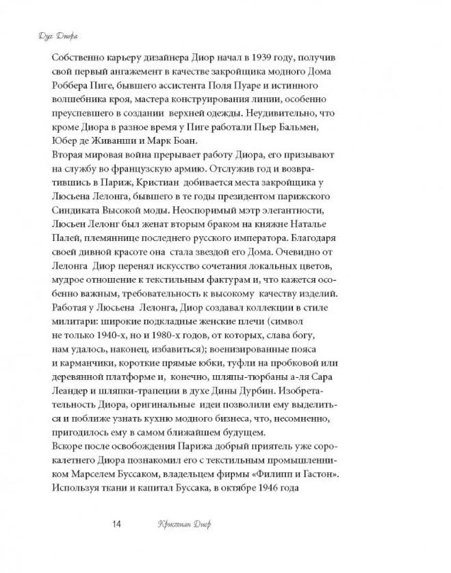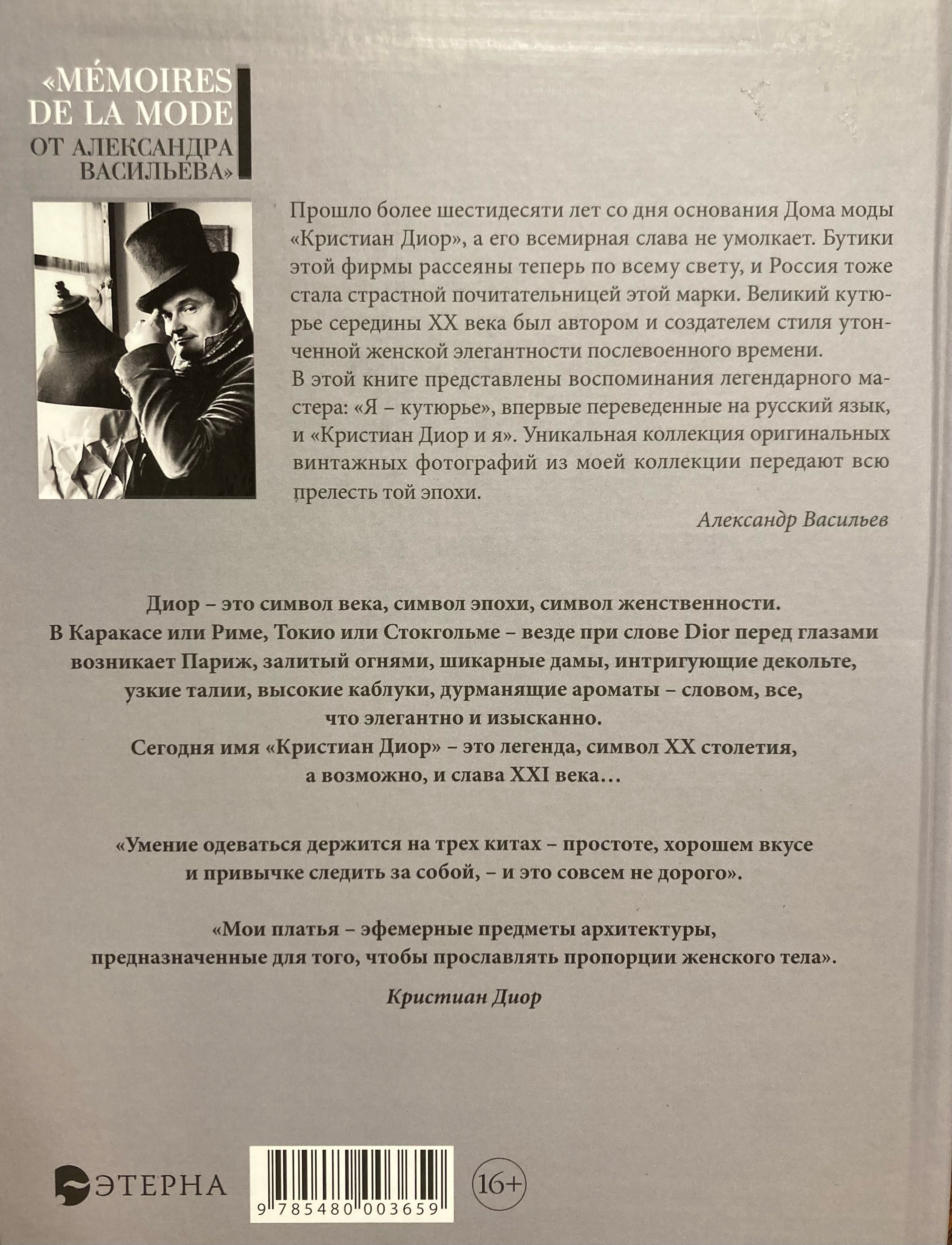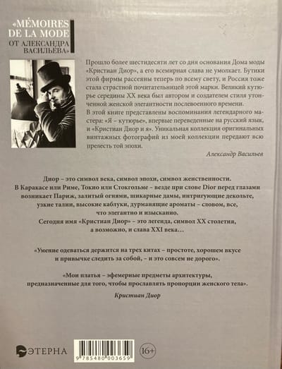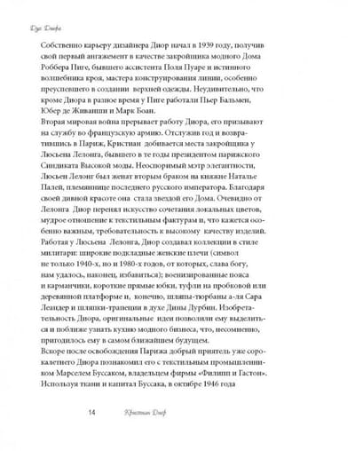More than sixty years have passed since the founding of the Christian Dior fashion house, and its worldwide fame has not ceased. The boutiques of this firm are now scattered all over the world, and Russia has also become a passionate admirer of this brand. The great couturier of the mid-20th century was the author and creator of the style of refined feminine elegance of the post-war time. Many books have been published about Dior. However, the distinctive feature of the books of the series "Memoires de la mode" is the first-person account of one or another outstanding character of the fashion world about himself and his work. This book presents the memoirs of the legendary master: "I am a couturier", translated into Russian for the first time, and "Christian Dior and me". A unique collection of original vintage photographs is presented in this edition by fashion historian Alexander Vasiliev.