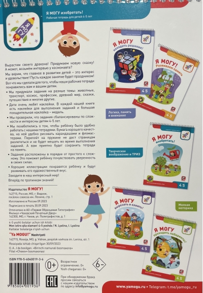 This workbook contains 61 engaging activities to develop your child's logic and creative imagination. These activities are designed to foster flexible analytical thinking and teach children to boldly and joyfully solve new, innovative problems, which is especially important in today's world. Using this workbook will broaden your child's horizons and develop their imagination and creative side.