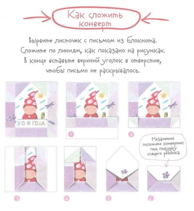 The difficulty level is designed for children who can read simple words. If desired, you can write a reply to the Gnome. The notebook includes ready-made letter-envelopes and stamp-stickers. You can also include a piece of paper with an interesting task in the letter.
