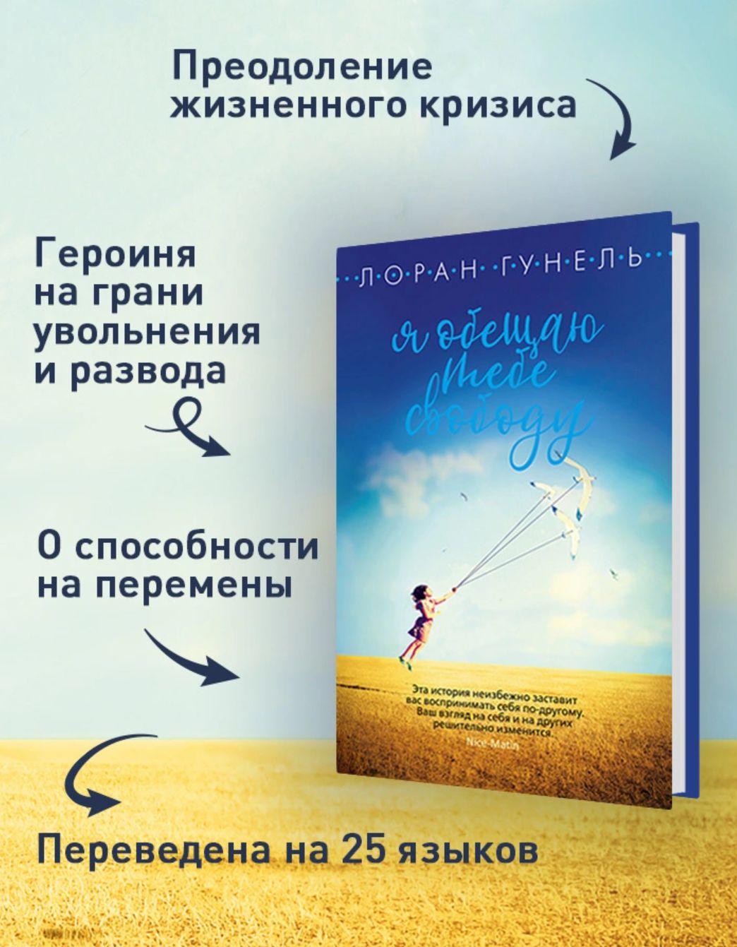 Imagine that your employer is going to fire you and you have only ten days to change the situation, but that same evening your partner tells you that your relationship has lost its meaning... And both of them believe that you are to blame for everything. Can you change yourself? But then a friend tells you about a mysterious man who is a member of a secret brotherhood and has secret knowledge. It is this man who has the power to transform you into a completely new person. Sibylle Shirdun, the heroine of the novel "I promise you freedom", is destined to face defeats, separation, betrayal, as well as happiness, joy, love. But will she be able to change herself?