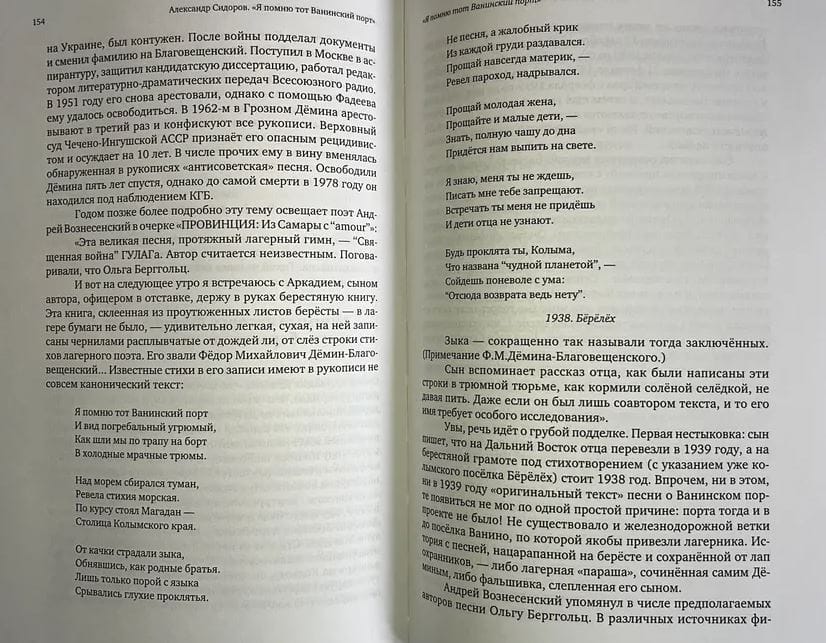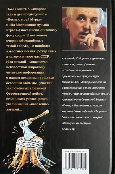 Alexander Sidorov's new book (like the two previous ones - "Song about My Murka" and "Music is Playing on Moldavanka") is devoted to the "lower folklore" - blat and prisoner songs. It includes essays, united by the theme of the Gulag, telling about the most famous songs, born in the camps and prisons of the USSR. And behind each - a lot of information about our recent past unknown to the general reader: "I remember that Vanino port" - about the development of Kolyma; "Former Urka, Soldier of the Motherland" - about the participation of prisoners in the Great Patriotic War; "Stage to the North" - about the decrees that dramatically increased the "population" of the Gulag; "On Kolyma" - about the fact that even in the camp life there was a place for love....