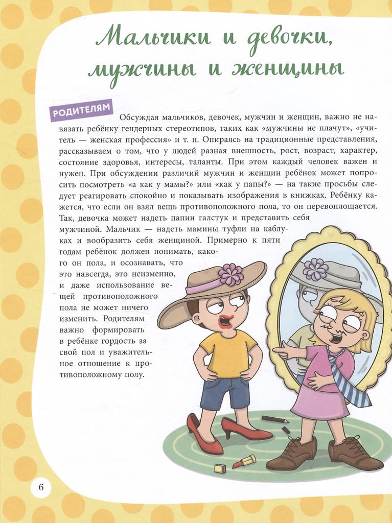 Sex education cannot be considered separately from education in general. You cannot set aside a specific day of the week and time to talk to your child about it. Body, safety, childbearing, differences between boys, girls, men and women are all around us. Therefore, the child is equally interested in what is inside the TV and what is in the panties of children of the opposite sex.