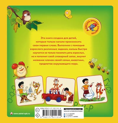 This book is designed for children who have just begun to pronounce their first words. By performing tasks with the help of an adult, the baby will quickly learn not only to understand the speech of adults, but also to enrich his vocabulary, learn the names of family members, animals, objects of the world around him.