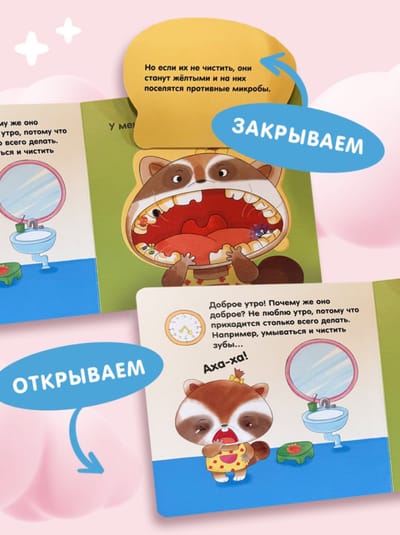 Bright and expressive illustrations and interesting details turn reading into an exciting game. Little ones can pull the pull-out panels and open the windows, developing fine motor skills and showing curiosity.