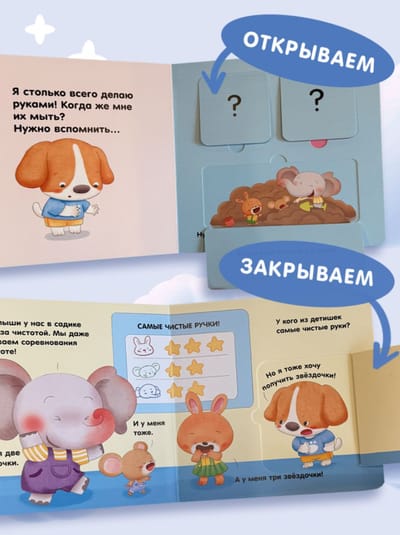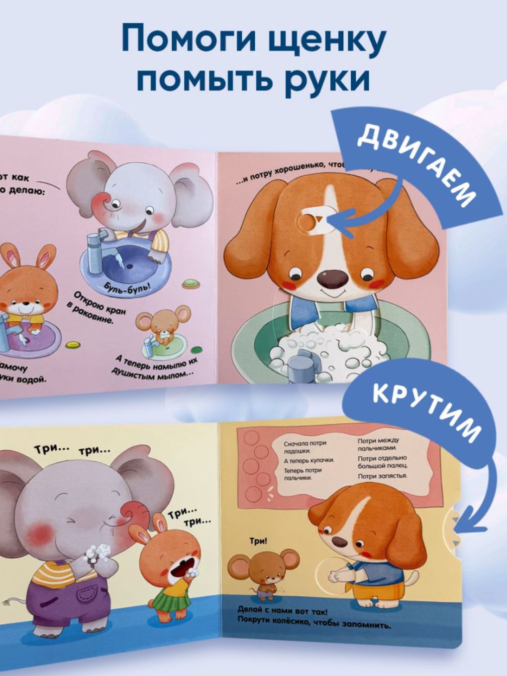 Bright and expressive illustrations and interesting details turn reading into an exciting game. Little ones can pull pull-out panels, twist pieces, and open windows, developing fine motor skills and showing curiosity.