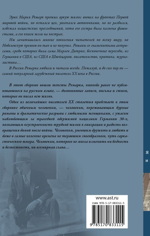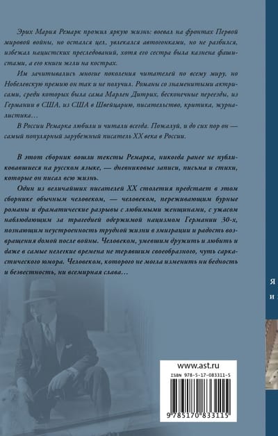 This collection includes texts by Remarque, never before published in Russian, - diary entries, letters and poems that he wrote throughout his life.