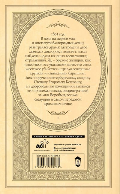 The case was assigned to St. Petersburg detective Stepan Yegorovich Koshkin, and his friend and neighbor, the eccentric chemist Vorobyov, a man well versed in the most advanced forensic science, volunteered to assist.
