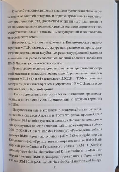 The documentary basis of the book is made up of previously unknown to a wide range of readers materials from the archives of the Ministry of Foreign Affairs, the Ministry of National Defense and the National Archives of Japan, as well as the Central Archive of the FSB of Russia, the archives of the UFSB of Russia for the Omsk and Saratov Regions, the Archive of the President of Russia, RGASPI, the Central Archive of the Ministry of Defense of Russia and a number of other archival repositories.