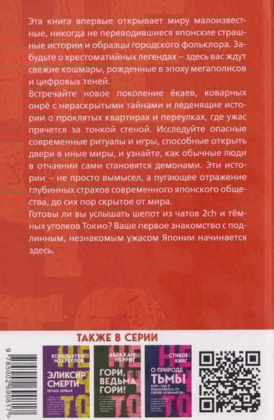This book reveals little-known, never-translated Japanese horror stories and examples of urban folklore to the world for the first time. Forget the proverbial legends—here you'll find fresh nightmares born in the age of megacities and digital shadows. Meet a new generation of yokai, insidious onryō with unsolved secrets, and chilling tales of cursed apartments and alleys where horror lurks behind thin walls. Explore dangerous modern rituals and games that can open doors to other worlds, and discover how ordinary people, in despair, become demons themselves. These stories are not mere fiction, but a terrifying reflection of the deepest fears of modern Japanese society, hitherto hidden from the world. Are you ready to hear the whispers from 2ch chats and the dark corners of Tokyo? Your first encounter with the authentic, unfamiliar horror of Japan begins here.