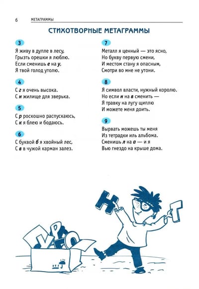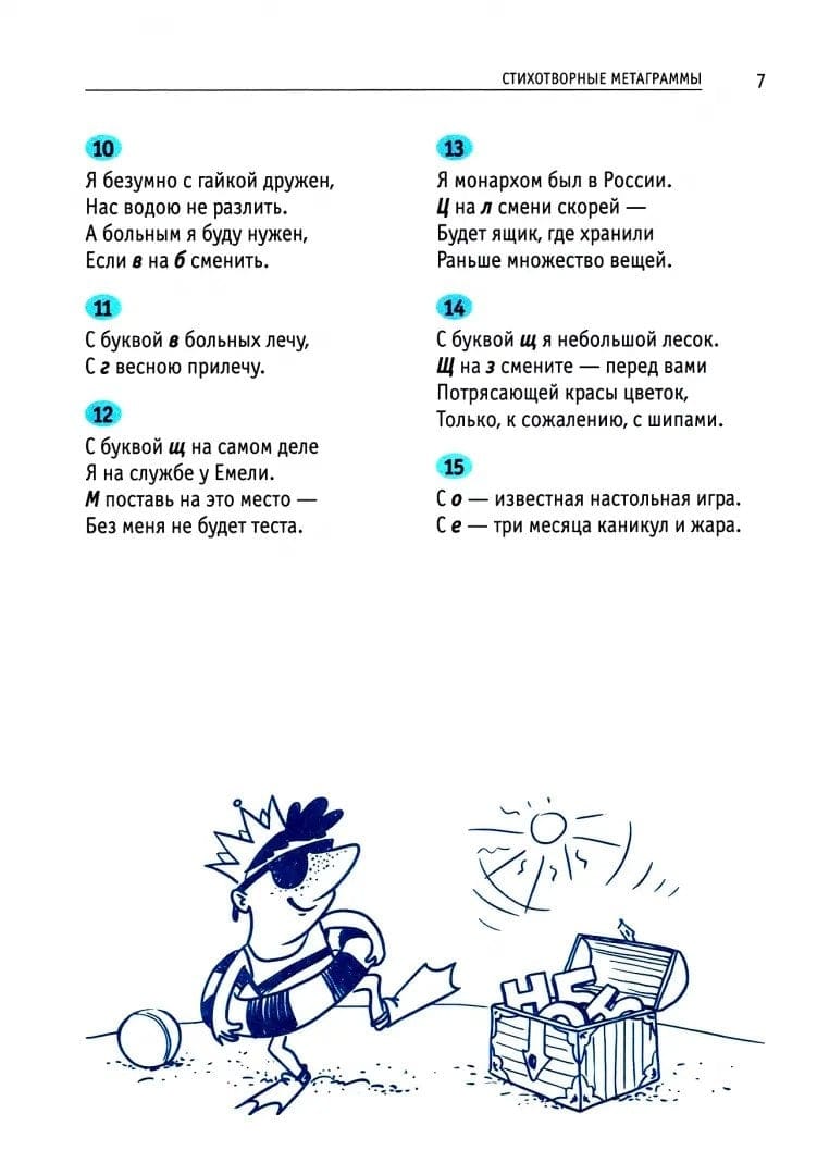 The book contains about 400 word puzzles of different types and different levels of difficulty: charades, anagrams, metagrams, logogriffs, palindromes, puzzle test problems and many others. All types are explained in detail, all puzzles are provided with answers.