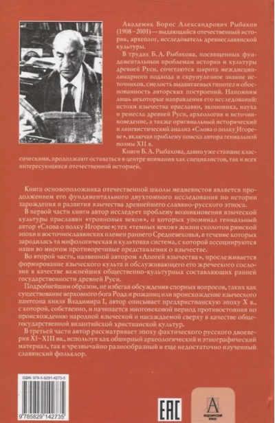This book is the work of Academician B.A. Rybakov, a distinguished historian and archaeologist, expert on the culture of ancient and medieval Rus', and the founder of the Russian school of medieval studies. It is a continuation of his fundamental two-volume study on the history of the origin and development of paganism among the ancient Slavic-Russian ethnos.
