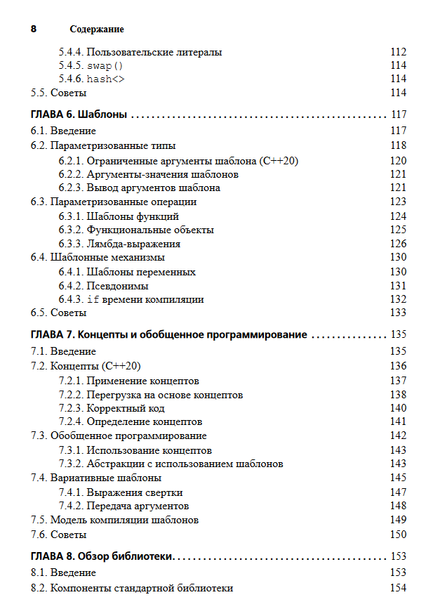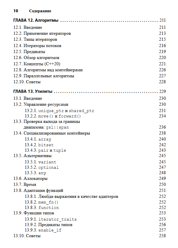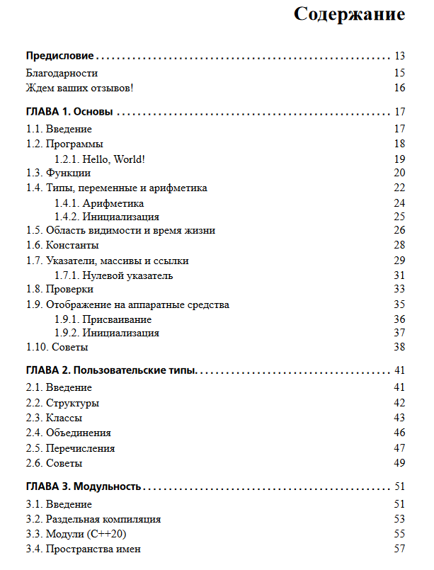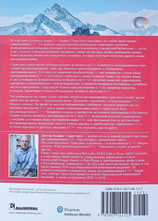 Straustrup presents C++ functionalities in the context of the programming styles they support, such as object-oriented and generalized programming. His book is surprisingly comprehensive - it starts with the basics of the C++ programming language and gradually moves on to complex topics such as the many new and established C++17 functionalities, including move semantics, uniform initialization, lambda expressions, advanced containers, random numbers, and concurrency. This includes some C++20 extensions, such as concepts and modules. The book concludes with a discussion of the design and evolution of C++. This guide is not intended to teach the reader how to program (another book by the same author, Programming. Principles and Practice Using C++. Second Edition). Nor is it an exhaustive textbook that will take you to the heights of C++ mastery (here we can recommend Straustrup's book C++ Programming Language. Fourth Edition and many sources of information on the Internet). However, if you are a C or C++ programmer who wants to become more familiar with the current state of the C++ programming language, or a programmer in another programming language who wants to see the exact picture and advantages of modern C++, you will not find a shorter and simpler introduction to C++ than this book.