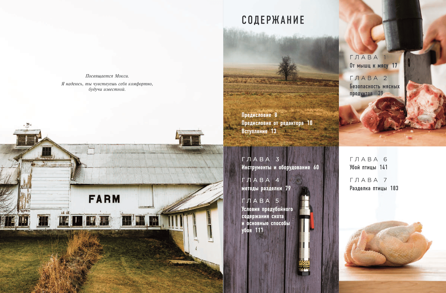 The book is a farmer's personal consultant to help avoid mistakes and save time and money. How to humanely kill poultry, rabbits, sheep, goats, pigs. How to properly pluck or skin, cut the carcass, chop and divide into marketable and portioned pieces, pack and store. What tools are the most convenient to perform this or that manipulation. How long meat should ripen and what chemical processes in meat occur during this time. How to organize the working space and ensure sanitary safety and much, much more.