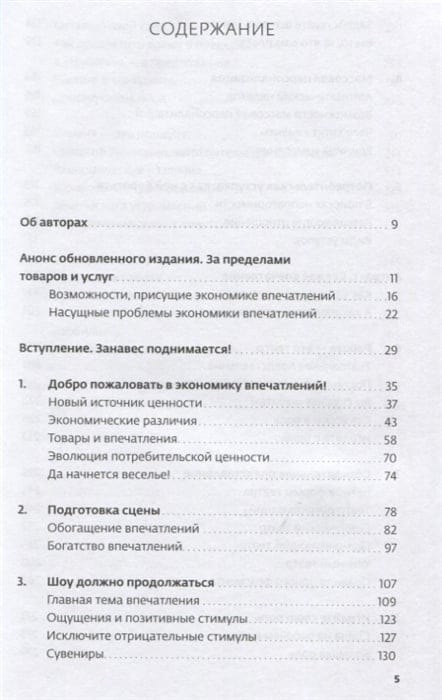 At present, a new economy is emerging - the impression economy, focused on the consumer's sensations. In this context, the authors advise abandoning the traditional relationship between the company and its customers; instead, the company should become an "experience director" and customers should become "spectators" or "guests". The book discusses the principles of successful impression directing, as well as the theatrical techniques that a company can use. This book is written for those who are looking for new ways to enhance the customer value of their offering. With its help, you will acquire the tools and techniques necessary to stage compelling experiences and perform amazing transformations for your current and future customers.