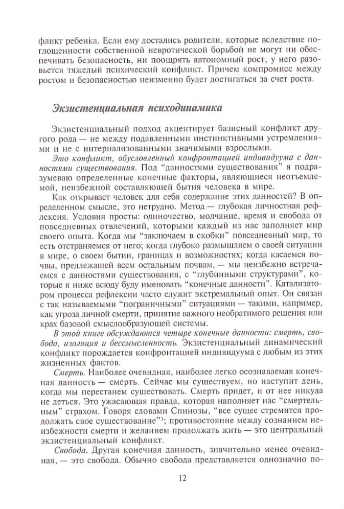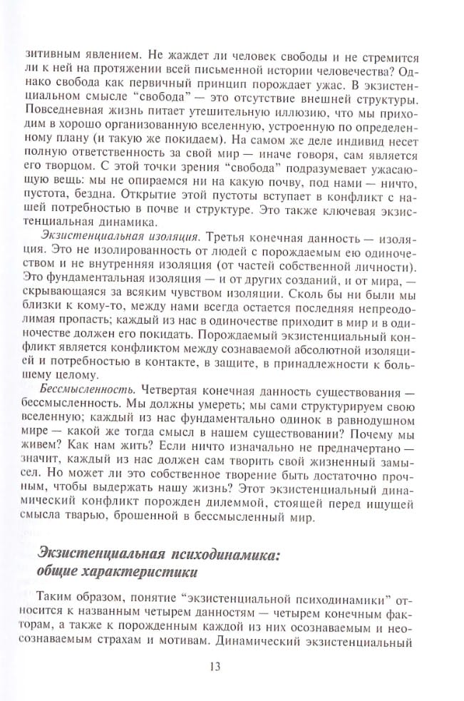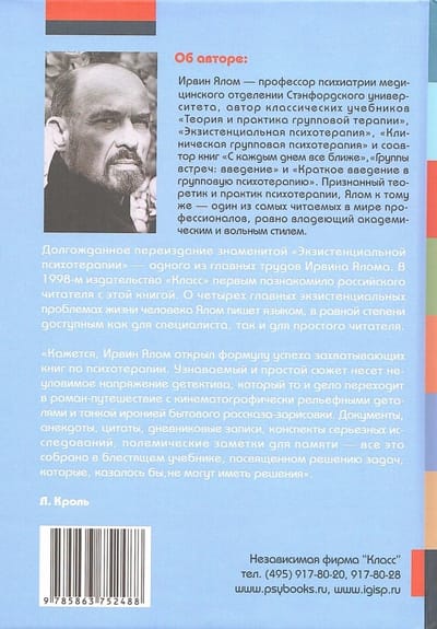 This book is one of the most fundamental and thorough works of the famous American psychotherapist, one of the most prominent representatives of the existential-humanistic trend. Existential therapy is presented in it as a holistic approach - from theoretical structure to technical techniques. Psychotherapists of any theoretical orientation should be familiar with this direction, as existential therapy focuses on the basic problems of human existence. In addition, this book will be extremely interesting for any specialist in the humanitarian sphere, as well as for those non-specialist readers who are ready to take on the difficult and exciting task of thinking about the essence of existence.