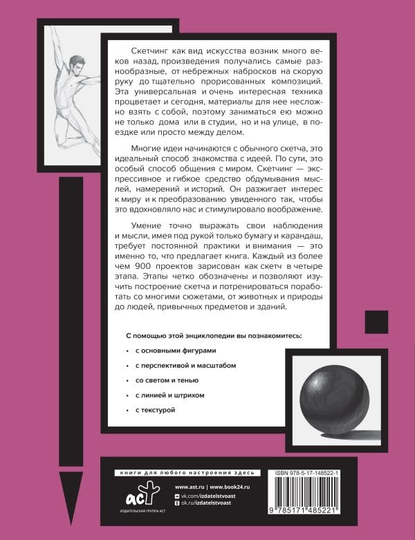 Many ideas start with a simple sketch, it's the perfect way to bring an idea to life, an expressive and flexible means of thinking about thoughts, intentions and stories. The ability to express observations and thoughts accurately and succinctly with only paper and pencil at hand requires constant practice and attention. This book will help you learn how to create any sketch with ease. For easier assimilation of the material, 900 subjects are sketched in four key stages, each of which is clearly labeled and allows you to learn the construction of a sketch and practice. To develop the stages, it is crucial not to tackle one particular subject, but to work with many themes, from animals and nature to people, familiar objects and buildings. As you improve and gain confidence, the versatile skill of depicting different contours, surfaces and scales will allow you to bring ideas and images to life. The book aims to do just that, and here you'll find everything you need, from an overview of basic tools and techniques to ways to build up a large stock of skills. You'll master topics such as basic shapes, perspective and scale, light and shadow, line and stroke, and texture. And you'll even own a whole library of textures!